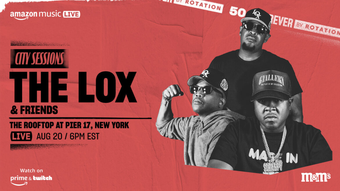 Amazon Music and M&M’S® just announced the final “50 & Forever” City Sessions livestream of the summer, starring hip-hop legends The LOX. On August 20, viewers can tune in on Twitch to watch The LOX and their lineup of special guests perform live from The Rooftop at Pier 17. This performance marks the end of a summer-long series, celebrating the 50th anniversary of hip-hop and featuring some of the genre’s biggest names.